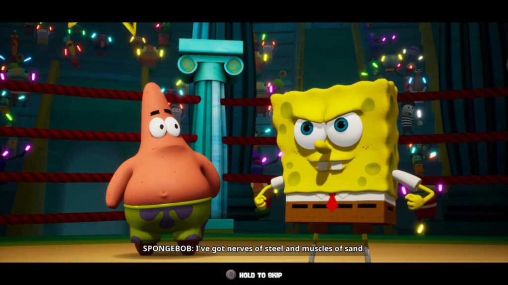استفاده از صداپیشههای اصلی در مراحل ساخت، از امتیازات نسخه جدید باب اسفنجی محسوب میشود اما متاسفانه عدم تعامل باب و پاتریک در میانه مراحل، باعث شده تا مونولوگهای باب مدام تکرار شوند و این موضوع پس از گذشت یک ساعت به سوهان روح بازیکن بدل میشود. با این حال دیالوگهایی که به هنگام کاتسینها میشنوید، خندهدار هستند و روح انیمیشن در آنها دمیده شده است.